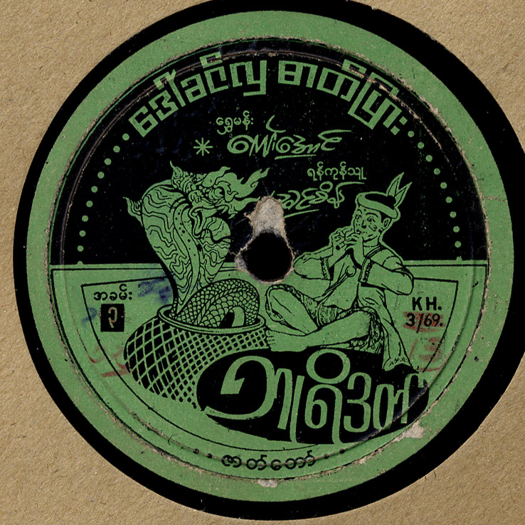 Burmese 78s tend to come in one of three basic varieties; chamber music (music for indoors), drama and “modern music.” Our first record is of the chamber music variety, on the HMV label, and features the wonderful singing of Yadana Myit, backed by a saung-gauk (harp) and violin.