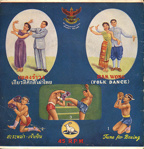 Such is the case with this 7 inch record on the Rabbit label. One side is some rather uninteresting pop music in the ramwong style. But the side we’re listening to here is muay thai, that is, music played during Thai kickboxing matches. Muay thai is a popular fighting sport that exists in different versions all across Southeast Asia and is hundreds of years old. The music is used to accompany the fighting. It begins slowly while the boxers pay their respects to their teachers and then increases in intensity as the fight escalates. I suppose there were many sports that used ritualistic musical accompaniment in the past, but this is one of the last, as far as I know.