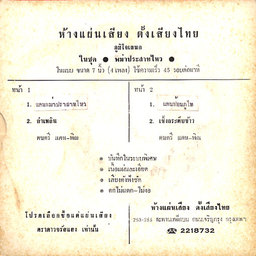 Thanks to Peter Doolan for translation and general info, he’ll be pitching in here while we explore some Thai records. Be sure to check out his amazing and informative Thai cassette blog MONRAKPLENGTHAI.