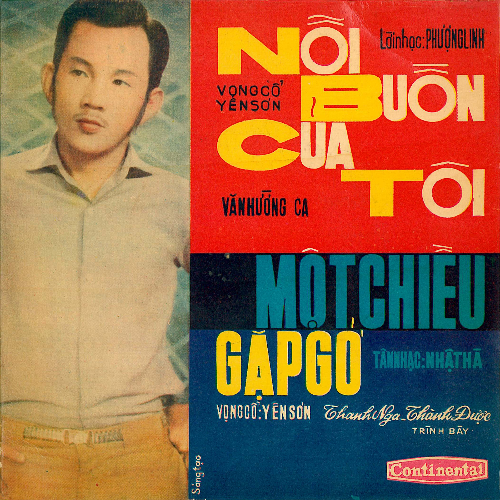 The song title is Một chiều gặp gỡ – An Afternoon Encounter. Nhật Hạ (a pseudonym for the songwriter Khánh Băng) wrote the tân nhạc (modern music). The female vocal is by Thanh Nga, an idol of the cải lương stage and cinema in the South. The male vocal is Thành Được, a popular cải lương actor. Văn Vĩ plays the lục huyền cầm (literally 6 string instrument, guitar, in this case with scalloped out frets). Yên Sơn wrote the vọng cổ (lyrics that fit the skeletal melody).