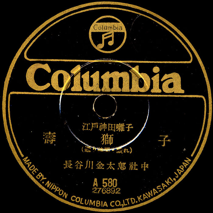 Here’s another great Japanese record on Columbia. This wild music is called Toori Kagura Tawamure, sacred music played at Shinto festivals for Kotobuki Jishi (Lion Dance). This particular piece is Edo Kanda Bayashi.