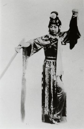 According to the label, this is a Hua Dan role performed by Xiao Hong Xin. Dan is the name for female roles in China, Hua Dan being one of half a dozen common female roles. Hua Dan is a younger, coquettish female who usually accompanies a Gui Men Dan, a virtuous older Lady, exemplified by the superstar Mei Lan Fang. Often these roles were performed by men, but I believe that Xiao Hong Xin is a woman. (Thanks to David Du for translations).